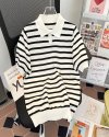 Men Fashion Casual Basic Stripe Print Plus Size Short Sleeve Lapel POLO Shirt