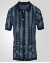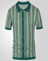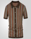 Men Fashion Casual Color Matching Cardigan Knitted Short Sleeve Lapel Shirt